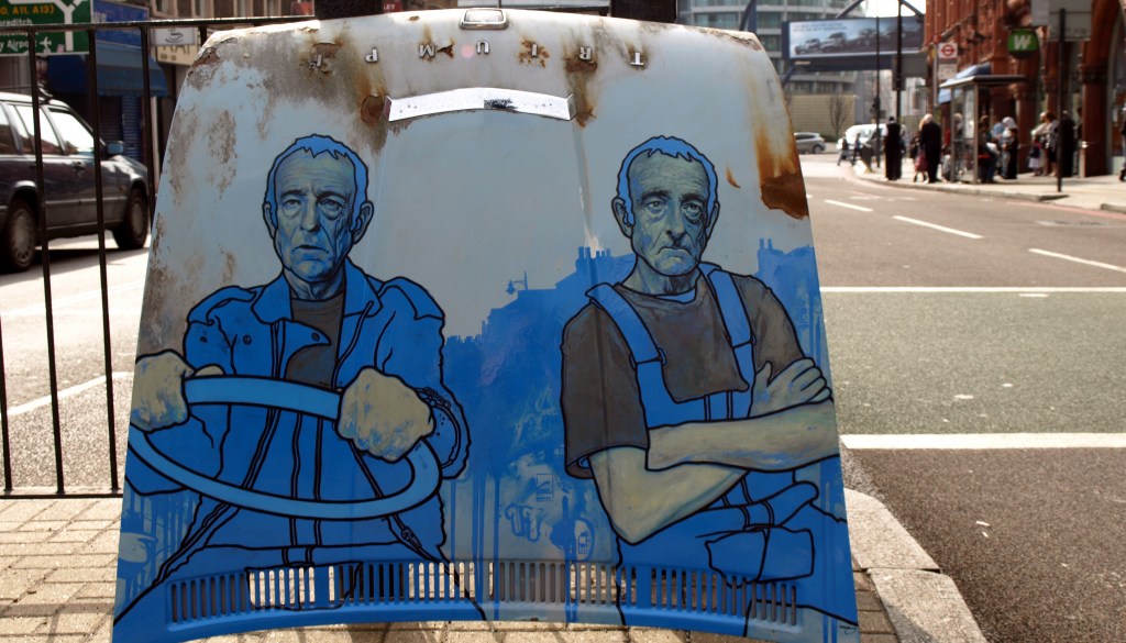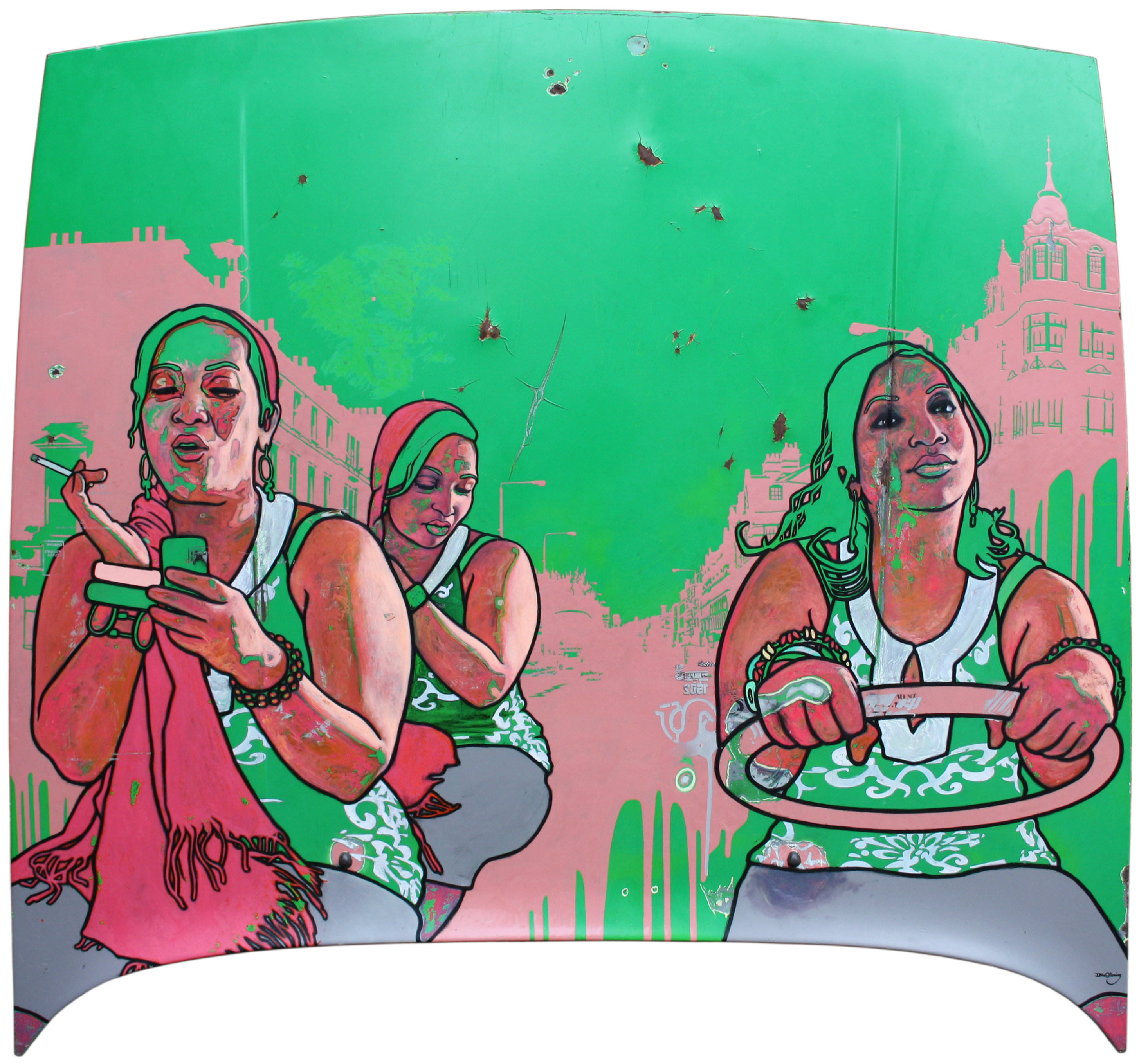 Le Fleming pursues the next car bonnet series with an exploration of sameness and difference. The series Petrol is a set of oil portraits painted directly onto car bonnets in driving scenarios. Each piece represents a multifaceted study of one individual, multiplied or cloned several times to construct the driving scene and interaction with itself.